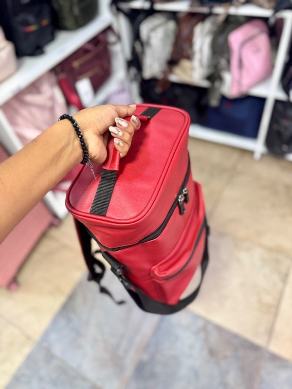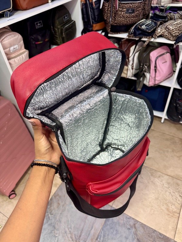 Mide 38 cm de alto x 30 cm de ancho y 12 cm de profundidad. Todo su interior térmico para llevar no solo tu juego de mate, también para alimentos.