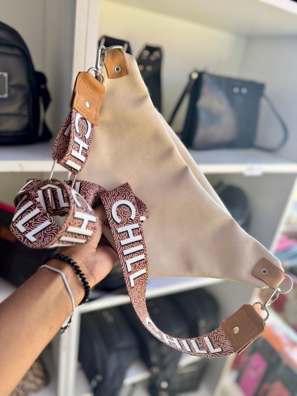 Confeccionada en cuero Pu, con cinta sublimada. Mide 33 cm x 16 cm